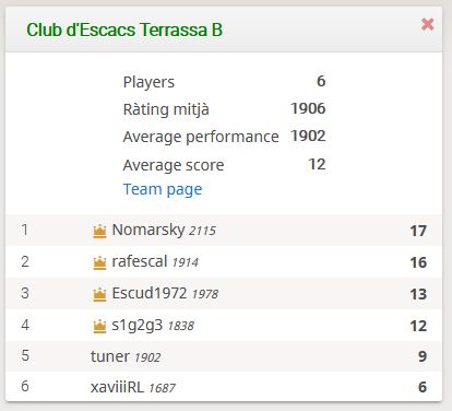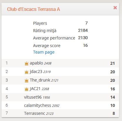 El Club d’Escacs Terrassa ha inscrit dos equips, l’A a Divisió d’Honor i el B que competeix a la Segona Divisió.