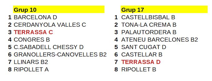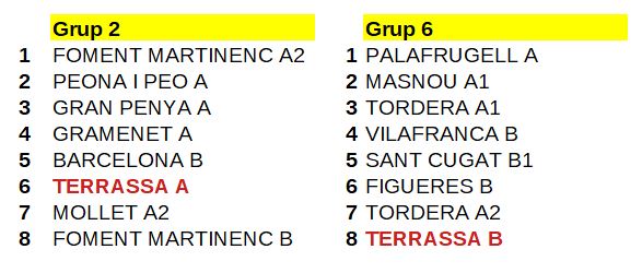 | CERDANYOLA C | – | TERRASSA C |