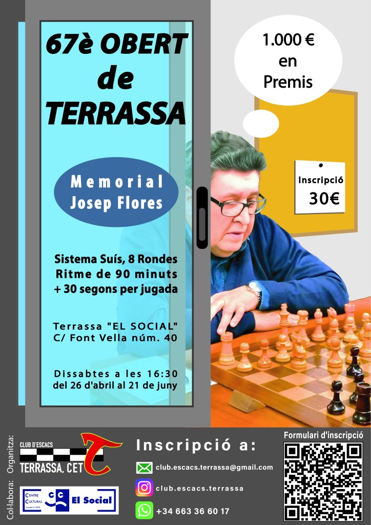 - LOCAL DE JOC: Club d’Escacs Terrassa, al Centre “El Social” (C/Font Vella 40)
