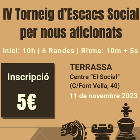 Octubre 12, 2023Novembre 11, 2023 Club Escacs Terrassa IV Torneig d’Escacs Social per nous aficionats (11 de novembre 2023)